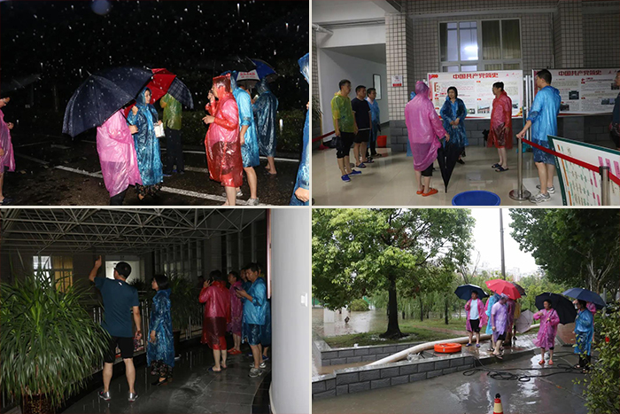 针对特大暴雨持续不停情况,学校党委立即组织相关部门召开防汛抗洪救灾应急指挥会议,成立临时防汛抗洪救灾应急指挥领导小组,统一协调指挥工作,要求协调购买、调运防汛沙袋等防汛救灾物质;要求学校各单位对教学楼、实训中心楼、学生宿舍、在建工程项目、家属院和所有地下室等重要部位进行险情排查,并对险情问题要及时上报进行应急处理;要求相关部门提醒教职员工和留校学生注意汛期安全,关注学生饮食、饮水和住宿安全。