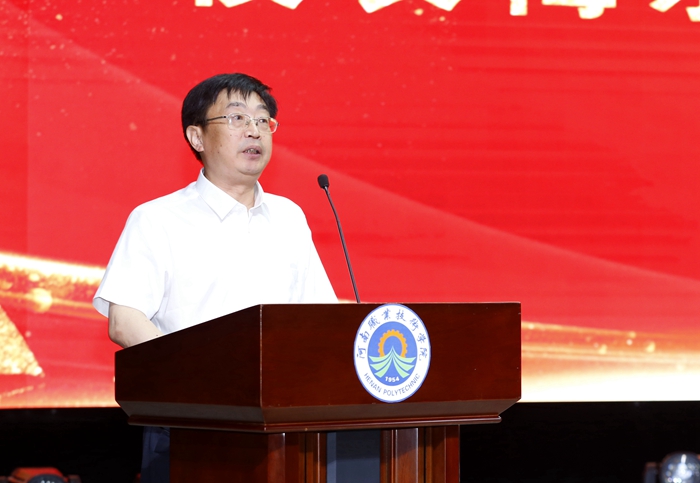 院长梅乐堂作了题为《拥抱时代,携花入海赴未来》的毕业典礼致辞。他代表学校,向学业有成、即将踏上人生新征程的全体毕业生表达了诚挚的祝福,向获得优秀毕业生和杰出毕业生荣誉的同学们表示了衷心的祝贺,向为同学们的成长成才付出辛勤努力的教职工们表示了崇高的敬意。他回顾了同学们在校三年学习、生活的点点滴滴,感谢同学们对学校发展建设作出的积极贡献。他希望同学们要永葆初心守“大我”,自觉将个人发展之“小我”融入国家发展之“大我”,在实现伟大复兴中国梦的征程中,展现河职人的智慧担当;要坚守恒心成“大才”,无论是继续读书深造还是工作创业,都要做到无一事而不学、无一时而不学、无一处而不学,保持勤学不缀的品质;要秉承匠心担“大任”,发扬精益求精的工匠精神,耐得住寂寞,坐得了冷板凳,下得了苦功夫,走好职教人的大国工匠之路;要胸怀爱心明“大德”,初入社会的你们,难免会遇到挫折、失落、艰难与困惑,但只要持自然真性,自信心境,爱生活、爱亲友、爱工作,就一定能够守得云开见月明,实现自己的人生目标。