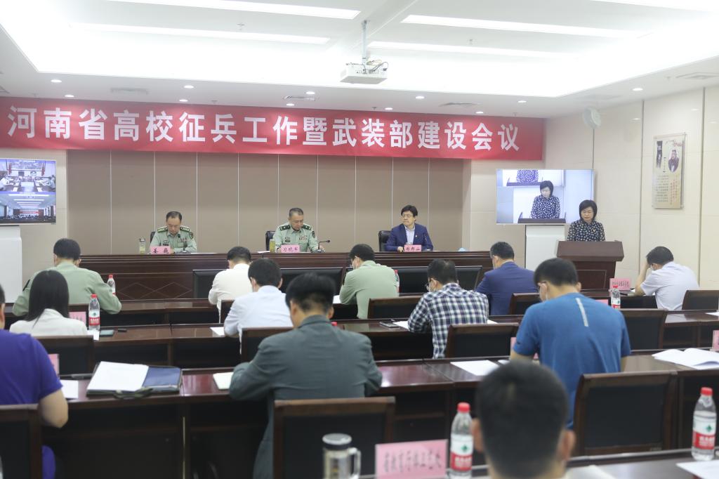 日前,河南省高校征兵工作暨武装部建设会议在省教育厅视频会议室召开。河南省军区副司令员习晓军,河南省教育厅厅长郑邦山出席会议,河南省军区动员局、省征兵办公室、省教育厅大学生征兵工作领导小组等单位主要领导及业务负责人在主会场参加了会议。我校党委书记李桂贞代表学校赴主会场参会并作典型发言,介绍了学校在全民国防教育及大学生征兵工作的经验做法。