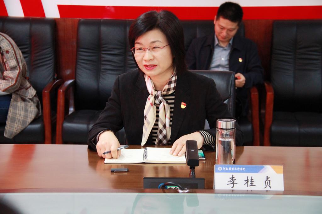 在听取完与会教师党支部书记的发言后,李桂贞代表校党委对一直在教学一线,默默无闻,辛勤耕耘的教师党支部书记们表示衷心的感谢,并与大家交流了学习党史和全国职教大会精神的感想。她对大家提出了三点希望:一是坚持立德树人根本任务,牢记教书育人初心使命,在传承革命奋斗精神、发扬河职精神上做好表率;二是坚持真学真实践,引领全体教师不断提升学习力,增值赋能,在传播知识和技能中做好榜样;三是坚持教育教学改革和创新,主动对接产业升级,结构优化,在推进“双高计划”建设和职教本科建设中发挥好示范带头作用。