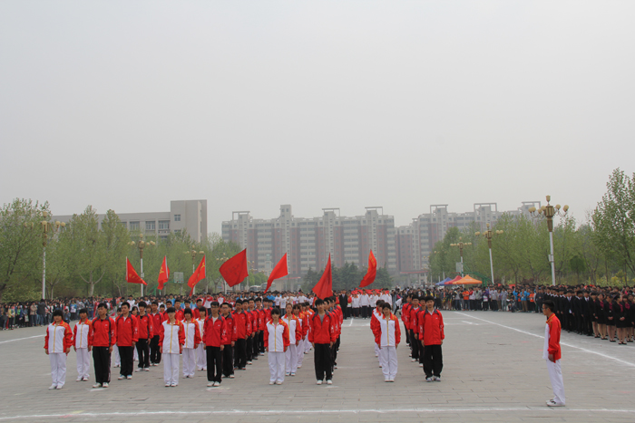 下午2点整,在激昂的音乐伴随下,各系参赛队迈着整齐的步伐依次入场,各个方队都英姿飒爽、充满活力,充分展示了当代大学生的气质。比赛现场,彩旗飘飘,锣鼓喧天。由各系大一学生组成的九支参赛队伍,着装整洁,队列整齐,在赛场上神采飞扬。整场比赛历时近三个小时,运动员们优异的表现,赢得了评委们的一致好评及观众们热烈的掌声。
