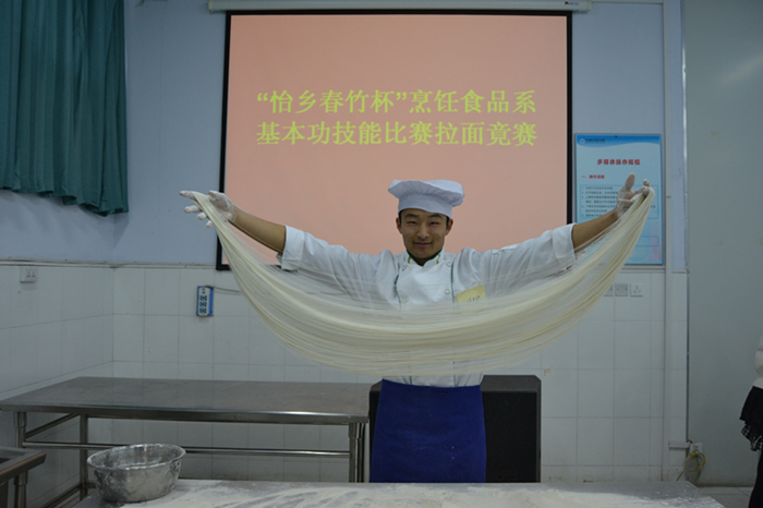 经过激烈的角逐和评审组认真细致的评判,李俊超同学获拉面项目一等奖,侯俊臣同学获刀工项目一等奖,蔡腾飞同学获翻锅项目一等奖,田伟获饮料制作项目一等奖,王梦培获白醋总酸度测定项目一等奖。