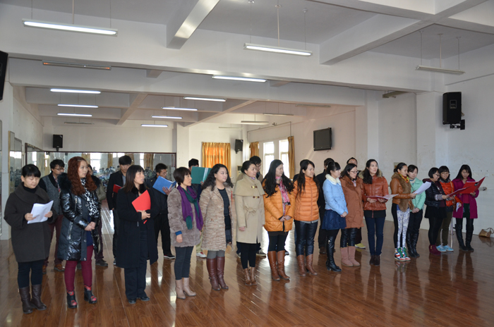 为确保圆满完成本次合唱表演任务,院领导高度重视,音乐学院认真组织挑选了该院及院团委和环境艺术工程系共20名专业教师组成合唱团,投入到紧张的排练之中。耿玉卿教授对合唱团演唱的豫剧《天职》唱段的《百姓歌》合唱曲目给予了充分肯定,并在戏曲人物及唱腔表演技巧等方面讲述了具体要求,合唱团表演水平有较大提升。