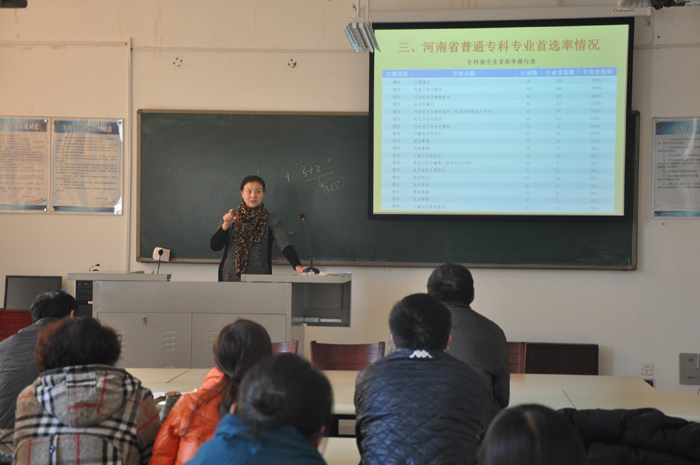 11月28日下午,招生就业处处长张琳受邀为电气工程系37名教职工作“2013年招生工作分析”专题讲座,她结合该系实际和今年专业招生情况,分析了该系招生工作的优劣势。讲座由系党总支书记梁杰主持。