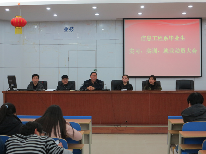 为切实做好毕业生顶岗实习和就业工作,信息工程系于10月30日至31日分批召开了2014届毕业生实习和就业动员大会。系领导和教研室主任、辅导员及900多名毕业生参加。