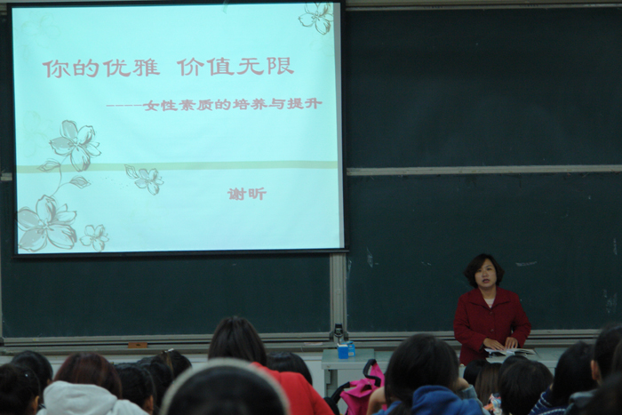 胡锡凤老师是首次为师生作讲座,她结合我院SYB创业培训班优秀学生代表成功创业案例,深入浅出地阐释了何为创业,创业的类型、条件、流程及SYB创业培训班的基本情况,以及国家对以创业促就业所出台的优惠政策。她认为,通过积累地域、家庭、教育等多方面经验,培养创业意识,参加社会实践,并参与专业培训,锻炼创业技能,才能到达真正的创业。她鼓励大家树立信心,勇敢挑战,正确选择创业方向,实现自己的创业梦。谢昕老师围绕“如何提高女性自身素质与修养”的主题,介绍了从古至今优雅女性代表,展示了美丽温婉、娴静典雅的东方女性特质。她告诉大家,一个人的素质修养是内在涵养的外在体现,并鼓励同学们要穿着得体,行为有礼,不断提高自身文化素养和品德修养,努力做一名符合社会发展的新时代魅力女性。