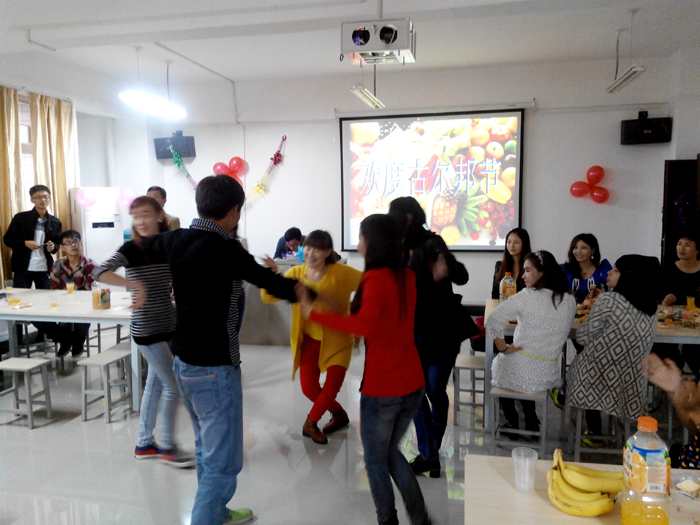 同汉族的端午、中秋一样,古尔邦节对于穆斯林民族而言,也是一个非常重要的节日。下午的小雨带来了秋日的凉意,但活动现场却暖意融融。同学们跳起民族舞蹈,唱起家乡歌曲,曼妙的舞姿和悠扬的歌声表达了他们对家乡的热爱和对亲人的思念。大家品尝着专程买来的新疆特色水果和点心,话民俗、叙情谊、谈感受、说理想,在欢快又充满民族特色的歌舞表演中共享大家庭的温暖,整个教室洋溢着节日的喜庆气氛。院团委书记杨华也代表全院师生向少数民族同学们表达了节日的问候和祝福,希望同学们能够增进感情,亲密和谐。活动丰富了少数民族同学的课余生活,增进了各民族同学之间情感交流和深厚友谊。