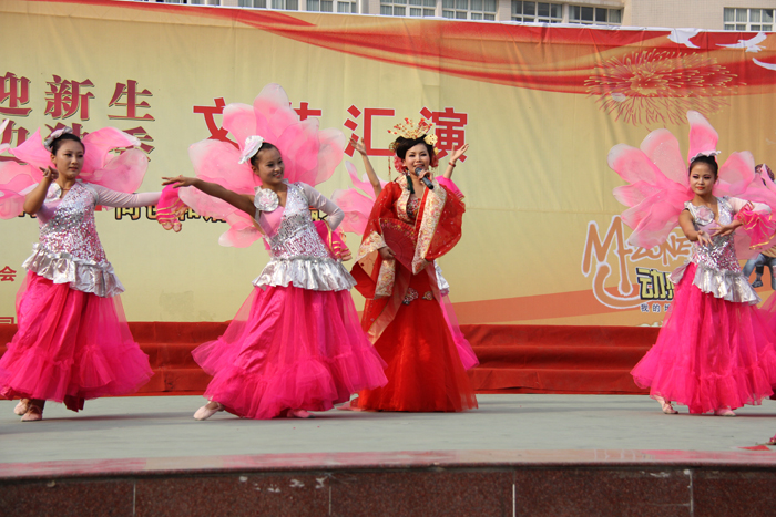文艺汇演由音乐学院教师合唱团带来的大合唱《天路》和《百姓歌》正式拉开帷幕。歌曲、舞蹈、诗朗诵、武术、T台秀等一个个精彩表演,点燃了观众的热情,现场高潮迭起,掌声连连。欢乐祥和的气氛使第一次离家在外的新同学们感受到了我院丰富多彩的大学生校园文化氛围和集体生活的快乐与温暖。