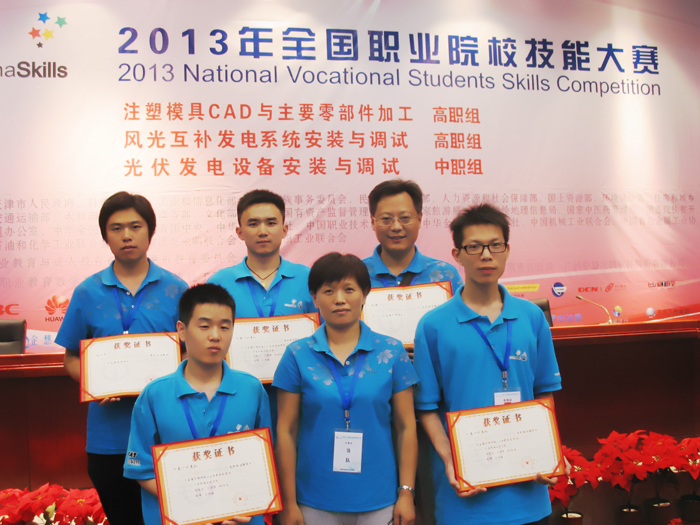 6月25日至26日,在天津举行的2013年全国职业院校技能大赛中,机电工程系学生代表队荣获高职组“注塑模具CAD与主要零件加工”赛项团体一等奖,“数控机床装配、调试与维修”团体二等奖。