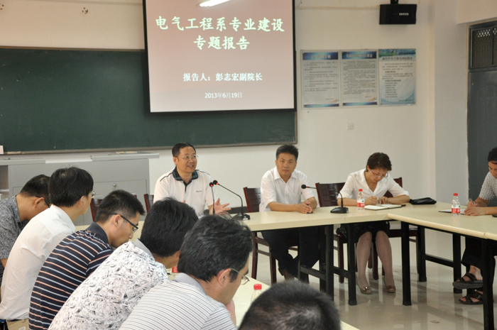 6月19日下午,电气工程系召开专业建设专题报告会。副院长彭志宏出席并作关于后示范时期专业建设的主题报告。该系领导和全体教职工参加报告会。