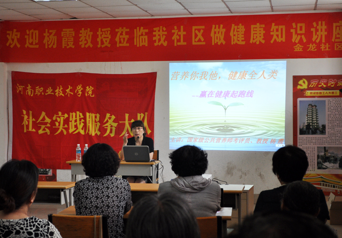 该系10多名青年志愿者5月12日开始走进社区,利用在校所学专业知识免费为社区居民测血压,通过散发营养知识宣传单,向居民们介绍与生活有密切联系的中医养生、饮食卫生、身体锻炼及养生保健知识。5月23日下午,该系杨霞教授还为该社区居民作了“赢在健康起跑线”专题讲座,深入浅出地介绍了生活中常见食品所含的各种营养元素,并列举了因膳食结构不合理而引发的各种常见疾病。她还对社区居民比较关心的高血压、高血脂、心脏病等老年人常见病的预防、营养膳食得搭配做了详细的讲解,并就营养健康的一些基本常识问题与居民进行了沟通和交流。