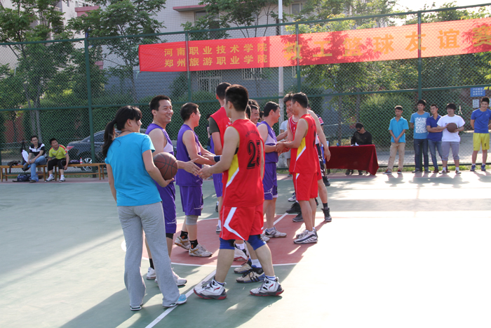 继我院教工篮球队应邀到郑州旅游职业技术学院参加篮球友谊赛后,5月22日下午,郑州旅游职院工会主席石国河一行率教工篮球队来我院回访,并进行了友谊比赛。副院长彭志宏和院工会主席邵芙蓉到现场进行了观看和指导。