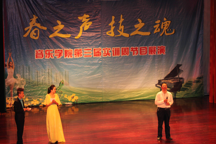 5月10日上午,音乐学院第三届实训音乐周专业技能展演活动在音乐厅举行。副院长彭志宏出席并作了关于教学实训工作的讲话。纪委副书记、监察室主任张帆,河南驻北京办事处主任张国华与音乐学院全体师生一起观看了幼儿艺术教育专业专场和声乐表演专业专场学生的专业技能展演。