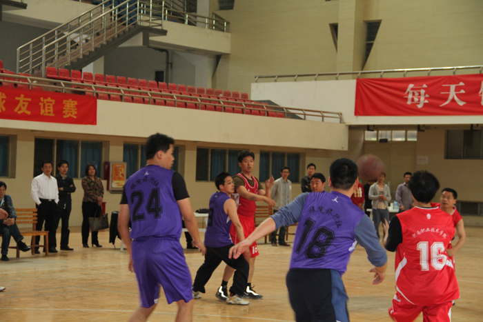 4月19日下午,院工会主席邵芙蓉、副主席赵燕军和教练肖泽民率领学院篮球队应邀到郑州旅游职业学院参加篮球友谊赛,并受到了该院党政领导、院工会和篮球协会的热情欢迎。