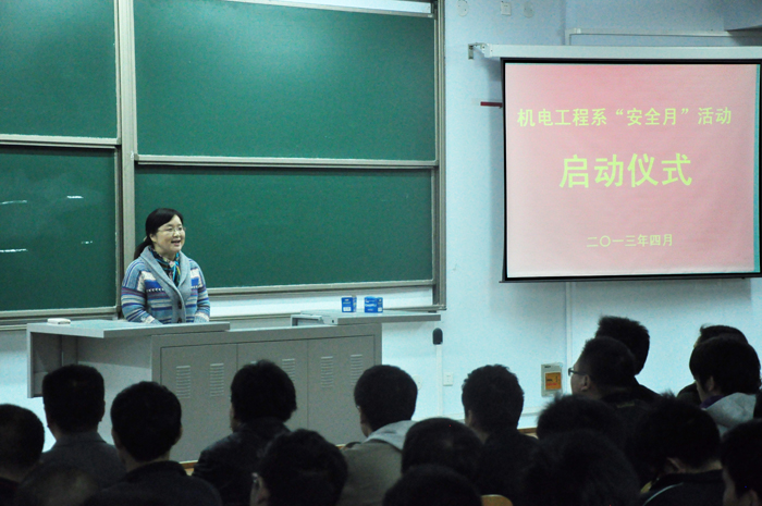 幸福是棵树,安全是沃土。4月2日晚,机电工程系“安全教育月”活动启动仪式在3110教室拉开帷幕。副院长肖珑出席并致辞。有关单位及该系领导和师生代表共300余人参加。会议由该系党总支副书记朱永宽主持。