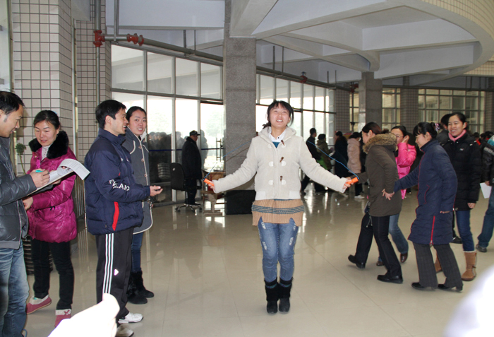 为丰富我院教职工的文化生活,锻炼教职工体质,12月13日中午,伴随着郑州的第一场雪,由院工会组织的2012年冬季教职工跳绳比赛在学院行政楼如期举行,共有来自17个分工会的607名教职工参赛。