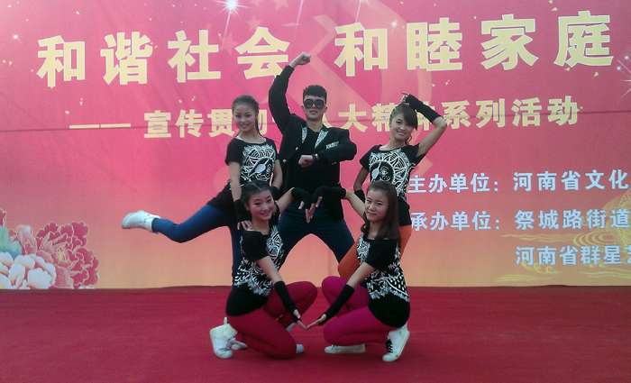 本次活动由省文化厅主办,省群众艺术馆、祭城路街道办事处共同承办。活动现场气氛热烈,观众情绪高涨。由音乐学院舞蹈队带来的舞蹈《江南style》以其青春时尚、活力四射的表演赢得了阵阵掌声,深受观众欢迎。此次演出是音乐学院“学演结合”服务社会系列活动的重要组成部分,今后还将进一步加大学生走向基层、服务社会的力度,以党的十八大会议精神为重要指导思想,切实做好大学生志愿者服务的经常化、社会化,塑造良好品格,提高综合素质,努力在实践中成长成才,为社会建设发展奉献青春力量。