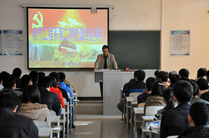 11月16日,电气工程系第二期业余党校结业典礼机电实训楼405室举行。副院长肖珑出席并作重要讲话。该系领导、全体辅导员和65名入党积极分子参加结业典礼。
