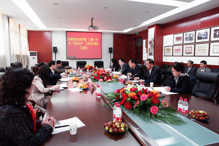 会上,检查组组长杨振华作了重要讲话。他强调了省高校纪工委开展“三重一大”和“校务公开”专项检查的重要意义,通报了我省高校在贯彻执行“三重一大”和“校务公开”过程中所取得的成效和存在的问题,并对本次检查的工作内容、方法和程序进行了具体说明。随后,与会人员一同观看了学院特色办学之路专题片《技之魂》。