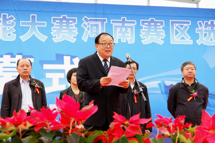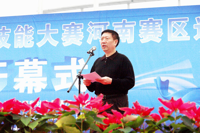 开幕仪式上,王爱群院长首先代表学院向各位领导、各位嘉宾、评委和参赛选手的到来表示热烈欢迎。他指出,我院在省委省政府的正确领导和上级有关部门的大力支持下,学院实现了跨越式发展,已成为国家级示范高职院校,是河南省在各类技能大赛中获奖最多的高校,是首批50所全国毕业生就业典型经验高校。学院在做好高职教育的同时,主动融入经济建设主战场,以全民技能振兴工程建设项目为突破口,开展大规模职业技能培训和创业引导培训,取得了良好的社会效果,并为社会输送了十几万操作能力强、技能水平高的技能型人才。