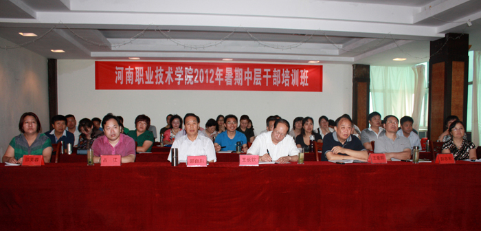 为进一步加强学院中层干部队伍建设,提升中层干部队伍的领导能力、业务能力和综合素质,2012年7月9日至11日,学院成功举办了2012年暑期中层干部培训班,学院党政领导与正处级干部一起参加了学习培训。培训班由学院党委副书记、纪委书记郭自川同志主持。