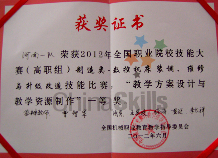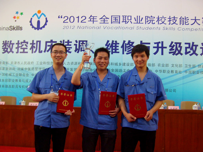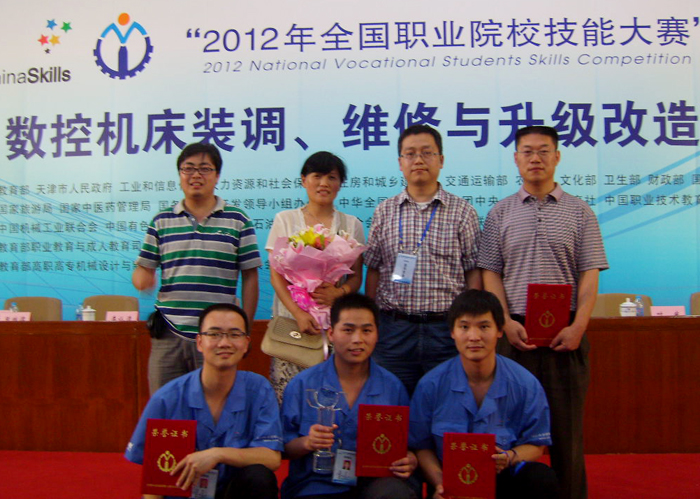 6月26日至27日,在天津机电职业技术学院举行的2012年全国职业院校技能大赛“数控机床装调、维修与升级改造”赛项中,我院选派的学生代表队和教师代表队,凭借扎实的功底、娴熟的技能、良好的素质和团结协作精神,从来自国内的55个参赛队中脱颖而出,分别荣获了本次赛项学生组和教师组一等奖的优异成绩,三位指导老师获得“优秀指导教师奖”。这是继我院参赛学生在获得汽车营销项目团体一等奖后,又一次获得的两个团体一等奖,展示了数控设备应用与维护专业技能,再次为学院争得了荣誉。