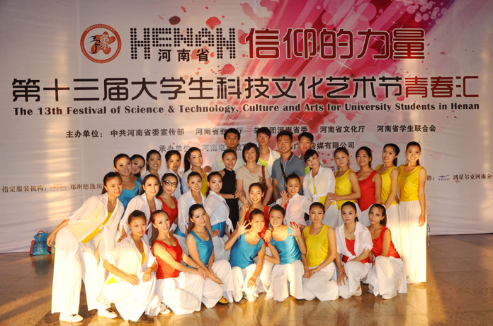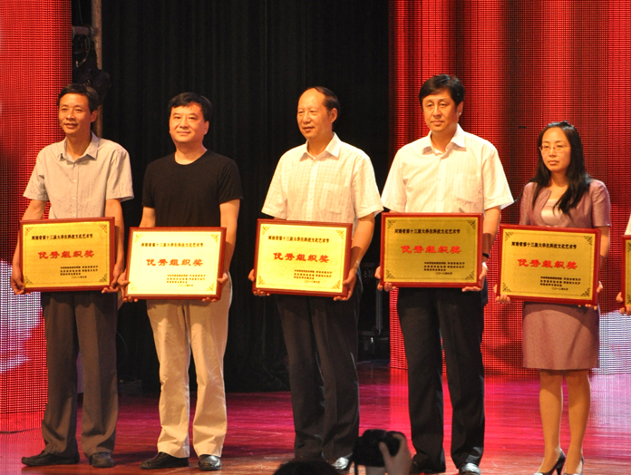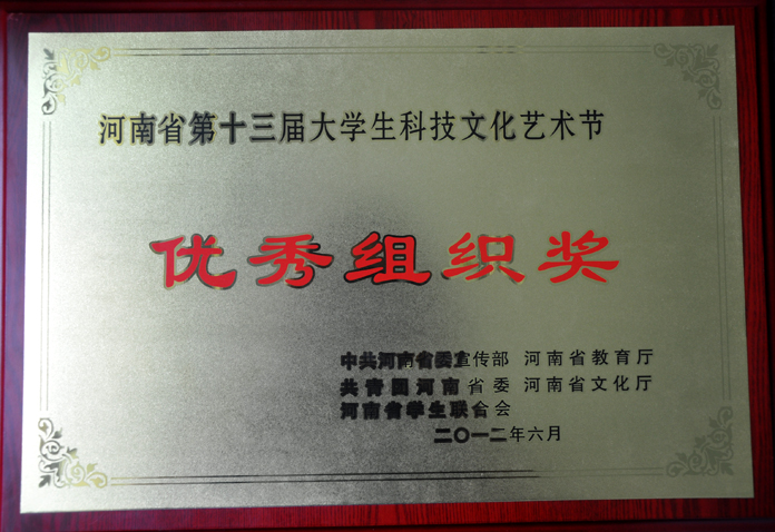 河南省大学生科技文化艺术节由省委宣传部、省教育厅、团省委、省文化厅、省学联等单位于1988年共同创办,两年一届,迄今已成功举办了13届。本届艺术节以“高举团旗跟党走,建功中原经济区”为主题,自4月份在我院开展以来,得到了学院党委的高度重视和大力支持,院团委认真组织,广泛宣传,相继在全院开展了书法、篆刻、摄影、美术、器乐、动漫、征文、歌手、街舞、健美操、主持人、短剧曲艺、舞蹈、广播微节目等一系列主题思想鲜明、时代特征突出、内容健康向上、形式丰富多彩的科技文化活动,营造了有利于青年学生健康成长的校园文化氛围,展现了大学生勤奋学习、团结进取的精神风貌,提高了大学生的综合素质,深受广大青年学生的热烈欢迎。今年,我院有近5000名大学生参与校级科技文化艺术活动,数百名学生、二十多件科技文艺作品参与了省级艺术节的各项活动。