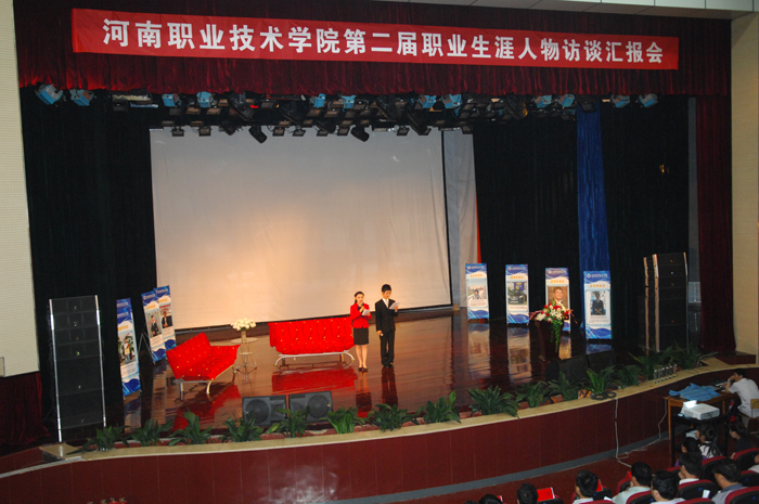 为帮助学生正确认知未来所从事的职业,特别是所从事职业对个人综合能力及素质的要求,自2007年起,我院每年都会组织一、二年级在校生利用假期,进行职业生涯人物访谈活动,在访谈中,发掘出众多可歌可泣的励志故事。为使更多的在校生分享到往届毕业生的故事,从中汲取经验与教训,我院于2011年开始举办职业生涯人物访谈汇报会。