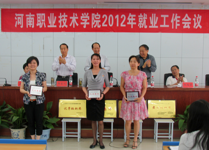 会议首先对2011年度就业工作的先进集体和先进个人进行了表彰,工商管理系党总支书记李相勤、辅导员董岳磊分别代表先进集体和先进个人发言。