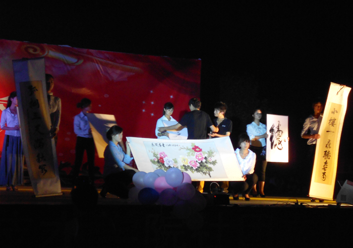 晚会在激情奔放的踢踏舞表演中正式拉开帷幕。武术协会带来的展示中国传统文化的武术表演,院艺术团的梨园戏曲串烧,书法协会充满古典神韵的书法表演,校园之声广播站激情昂扬的诗歌朗诵等精彩节目无不将晚会一次次推向高潮。一首和谐的《相亲相爱的一家人》大合唱表演表达了同学们对幸福美好生活的热爱,晚会圆满落下帷幕。