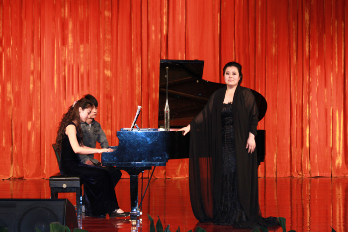 音乐会上,祁伟耿教授的一首《欢乐颂》独唱表演拉开了音乐交流演出的序幕。随后,她和她的学生深情演唱了贝里尼的《痛苦的弗雪》《尽情欢乐》、理查•斯特劳斯的《万灵节》《奉献》以及普契尼的歌剧《蝴蝶夫人》选段。交流演出在普契尼的歌剧《艺术家的生涯》选段中圆满结束。演出结束后,双方师生进行了深入的专业交流。