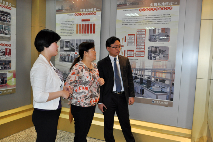 考察组一行首先参观了学院发展成果展和该系实训中心,对我院设施齐全、秩序井然的实训场所表示充分肯定。洽谈会上,王爱群院长致欢迎词。随后,双方一同观看了我院特色办学之路专题片《技之魂》,肖珑副院长着重介绍了学院的发展历史、办学特色、人才培养等三个方面的情况。考察组则详尽阐述了“宝马售后英才教育项目”的培训理念、培训流程、场地要求、管理标准及师资要求,并对我院校企合作各方面的准备情况和发展前景进行了综合的考察评估。双方还围绕我院制定的合作项目规划方案进行了讨论与交流,对场地布置规划、师资要求及师资考核方式进行了全方位的提问与深层次的回答。与会院领导对合作项目中严格的师资培训和将新技术纳入到项目培训中的做法表示认可和赞赏,表示学院已选出具有精湛技能的优秀教师作为培训授课教师。双方对“宝马售后英才教育项目”的合作前景充满了期待,共同表达了开创校企合作共赢局面的美好愿景。