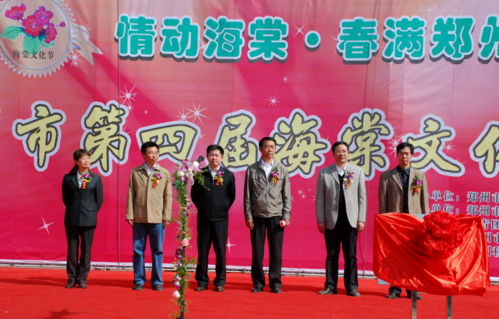 活动上,彭志宏副院长代表应邀的学校做了热情洋溢的讲话,向碧沙岗公园赠送了我院引种的“龙柳”和“金缘连翘”两种植物,随后同郑州市宣传部、园林局领导一起为我院在碧沙岗公园设立的“教学实习基地”揭牌。碧沙岗公园也向我院环境艺术工程系园林工程技术专业学生赠送了100册《碧沙岗海棠》专业书籍和园林植物“金雀”。