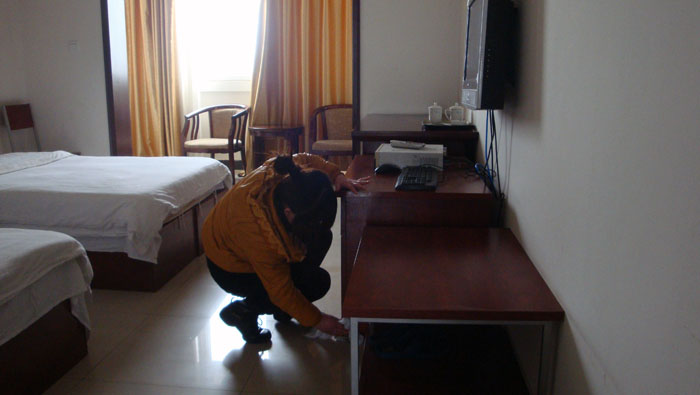 雷锋纪念日到来前夕,旅游管理系掀起学雷锋热潮。3月2日下午,我系开展了一次结合专业技能学雷锋活动。40余名客房和前厅实习的酒店管理专业学生,在学生党支部老师的带领下,来到学院龙子湖快捷酒店,对正在营业中的酒店客房进行了细致的专业整理,并与学院资产经营管理公司经理李超同志进行了沟通和交流。随后,同学们还对即将改造成酒店客房的原旅游烹饪系所在的四楼办公室进行了打扫和清理。大家积极地投入到工作中,个个争当活雷锋,发扬吃苦耐劳的精神,不怕脏、不怕臭、不怕累,连续工作两个多小时,将四楼所有房间以及走廊和楼道内的垃圾清扫干净。同学们一丝不苟的工作态度和扎实过硬的专业知识赢得了酒店工作人员的高度赞赏,同时也给了同学们更多的鼓励。