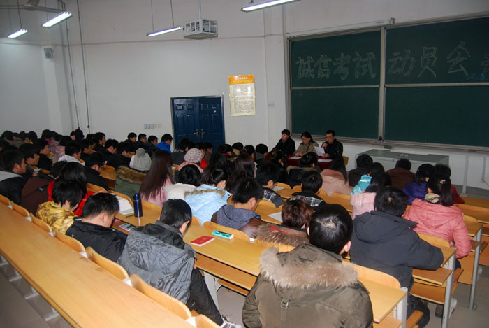 2011年12月30日中午,烹饪食品系在电教楼104教室组织系学生会成员、学生党员、预备党员及入党积极分子,举行了“诚信考试”动员会。烹饪食品系党总支书记张首玉、副主任陈燕萍及全体辅导员参加了会议,张首玉书记发表讲话。