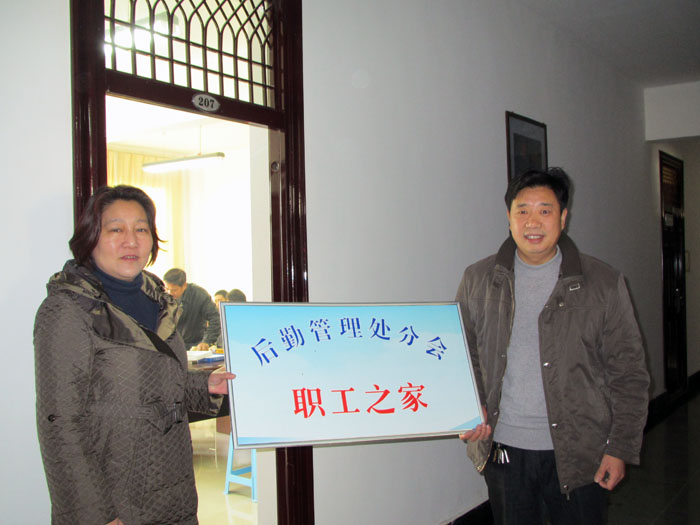 2011年12月15日上午,后勤分会举行了职工之家揭牌仪式,院工会主席邵芙蓉、副主席赵燕军、周立法及后勤分会的领导和部分教职工参加了仪式。