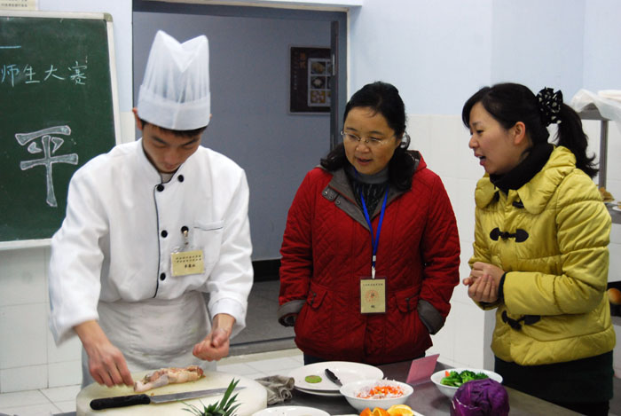 学院第九届“师生技能比武大赛”烹饪食品系赛区学生组决赛于2011年12月3日圆满结束。院长王爱群、副院长肖珑和教务处处长周宗杰等领导到烹饪食品系赛区巡视指导,对烹饪食品系的赛事组织工作表示满意。王院长针对烹饪食品类学生的技能培养等问题提出了指导性意见。
