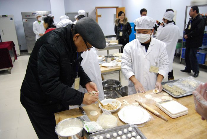 院领导亲切与参赛选手进行交流,点评了选手制作的参赛作品,充分肯定了参赛选手的技能水平。王院长对陪同参观的系领导指出:食品类专业教学要紧贴市场需要。比如速冻食品的制作就应该在继承传统面点工艺的基础上,要注意充分了解不同地区人群的口味差异,根据不同人群的营养所需,搭配适宜的产品。在中原经济区建设中,食品业作为河南重点发展的产业,要更加重视提升社会所用、企业所需复合型高技能人才的培养,建立与中原经济区建设相匹配的专业体系和人才培养体系,使我们培养的学生在就业市场上更具有竞争力。