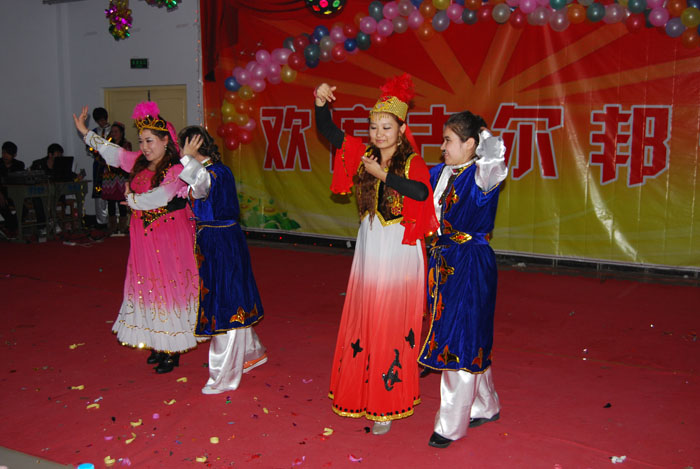 联欢晚会上,少数民族学生的特色民族节目成为整场晚会的焦点,新疆班同学充分展示了能歌善舞的才华。《新疆山水美》、《花园》、《愉快》等众多优美的舞蹈让现场的同学们感受到浓浓的民族风情。学生们载歌载舞,用歌声、舞蹈来庆祝节日,现场气氛温馨,高潮迭起。