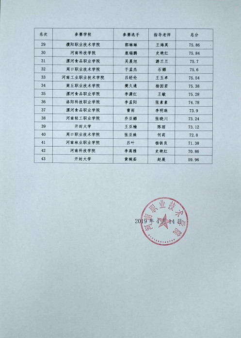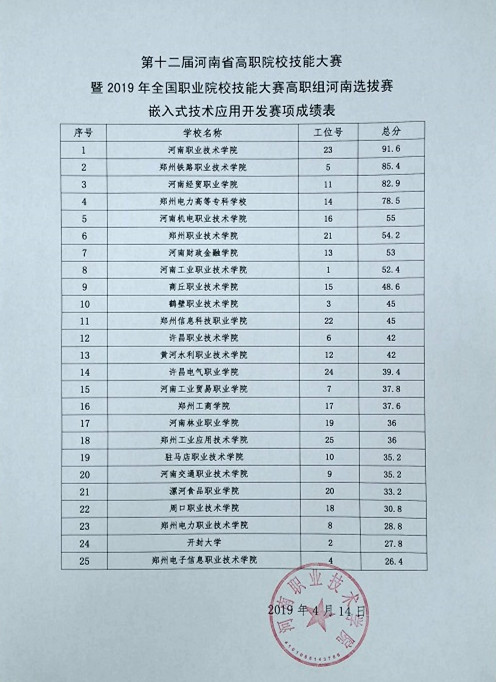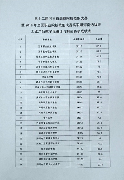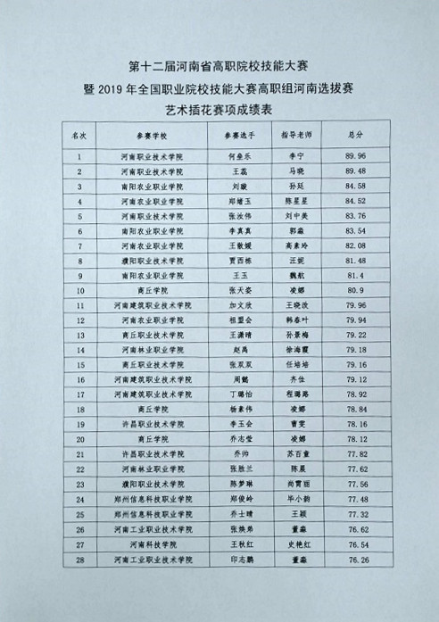 2019年全国职业院校技能大赛高职组河南省选拔赛艺术插花、嵌入式技术应用开发、工业产品数字化设计与制造三个赛项于2019年4月13日—14日在我校举行,现就三个赛项比赛成绩进行公示,公示期4月15日—4月18日。