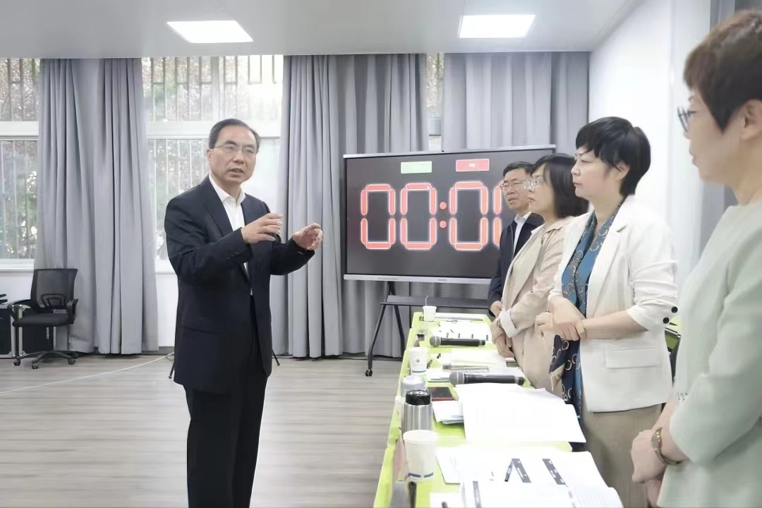 在培训阶段开门说课环节,尹洪斌一行来到说课现场听课、指导并与专家评委、参赛选手亲切交流。尹洪斌指出,参赛选手备战国赛,时间紧,任务重,挑战严峻。此次“云上大练兵”是对参赛选手的查漏补缺,是“大听课、大调研”“大练兵、大比武”等活动成果的“大凝练”。参赛选手要认真研读教育部文件,不断打磨作品,依据学情分析报告,结合鲜活的案例分析,进而凝练、提升,从而打造出有亮点、有河南特色的精品课堂,做到符合教育部教育教学目的的要求,符合思政课的要求,符合学生思想政治各方面提升的要求。专家评委既要当好裁判员,又要当好领跑员,还要当好指导员,对参赛选手做到实事求是、毫无保留。尹洪斌强调,参赛选手要将所学所悟,内化于心、外化于行,展现河南高校思政课教师形象和风采。