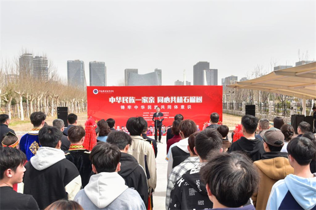 最后,厉励与师生代表共同为“民族团结石榴林”揭牌;师生们共同栽种了56棵石榴树,象征56个民族像石榴籽一样紧紧抱在一起,心连心、手挽手,共同构建中华民族大家庭。(隋纳新)