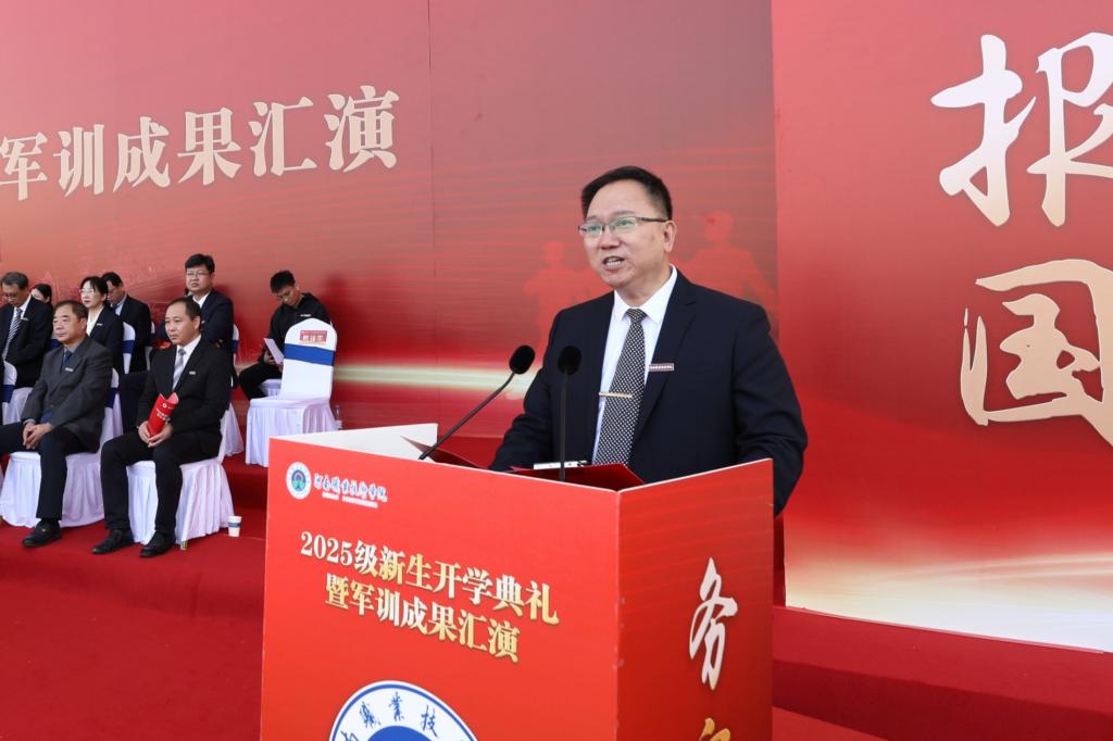 教师代表陈佳平结合自身40年从教经历激励同学们一要敢于“动手”,练就扎实本领;二要追求“卓越”,涵养工匠精神;三要注重“修身”,锤炼高尚品格。新生代表苏诗霞号召全体新生牢记“爱党、报国、拥军、荣校”的校园文化精神,全力以赴过好大学生活。校友代表夏中兵回望从河职入学到如今的成长之路,感谢母校给予的成长平台并希望2025级新同学守住初心、踏实前行,活成自己期待的模样。
