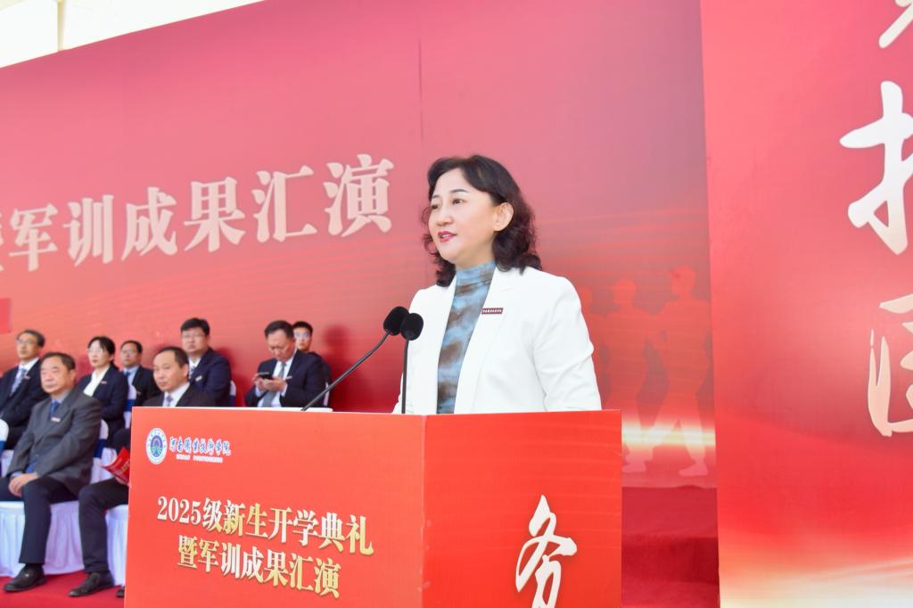 夏新颜代表学校全体教职工向7332名新同学加入河职“大家庭”表示欢迎,向来校指导军训工作的全体教官表示诚挚感谢,并作了题为《以G代码编程人生,以工匠精神驱动未来》的致辞。她指出,河职71载薪火相传,生生不息,是一所有根有魂,有梦有路,启智润心的大学。夏新颜对全体新同学提出三点希望:一是希望你们写入G54代码定位,在心田里传承家国情怀的“价值原点”,让青春在为中国式现代化挺膺担当中焕发绚丽光彩;二是希望你们执行G01指令定向,在行动上传动精益求精的“直线路径”,用专注书写属于自己的精彩未来;三是希望你们调用G02/G03智慧超越,在协作中放大融合创新的“优美弧线”,在成就自我中汇聚百花竞秀芳满园的青春智慧。