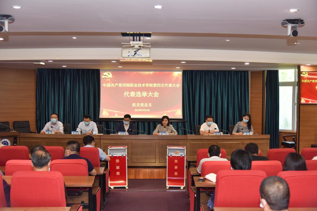 9月26日下午,机关党总支在行政楼238会议室召开全体党员大会,选举出席中国共产党河南职业技术学院第四次代表大会的代表。机关党总支115名党员参加了会议。党委书记李桂贞、校长梅乐堂、副校长任枫轩以普通党员身份参与了选举。会议由机关党总支副书记刘竹主持。