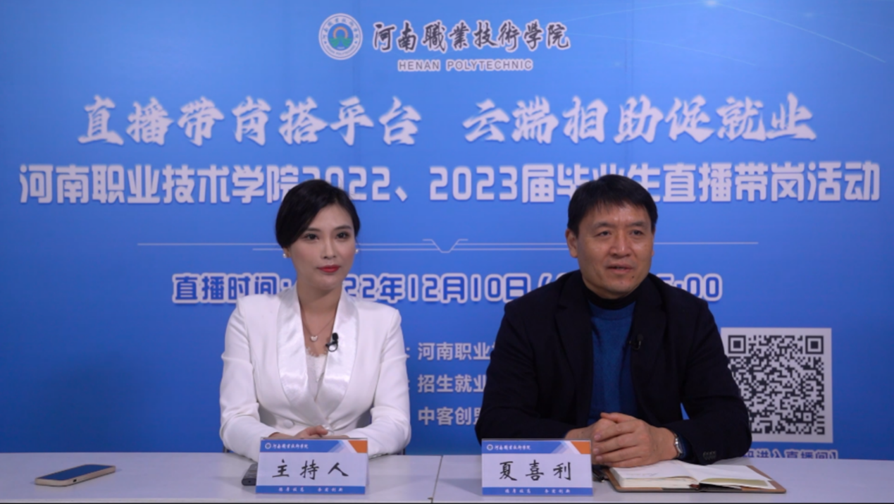 12月10日下午,我校成功举办“直播带岗搭平台 云端相助促就业”暨河南职业技术学院2022、2023届毕业生直播带岗活动。校工会主席夏喜利为学生带来了中国重汽集团、上海东湖集团和广州发展集团等11家国企、央企、上市公司和行业龙头企业数百个优质招聘岗位。