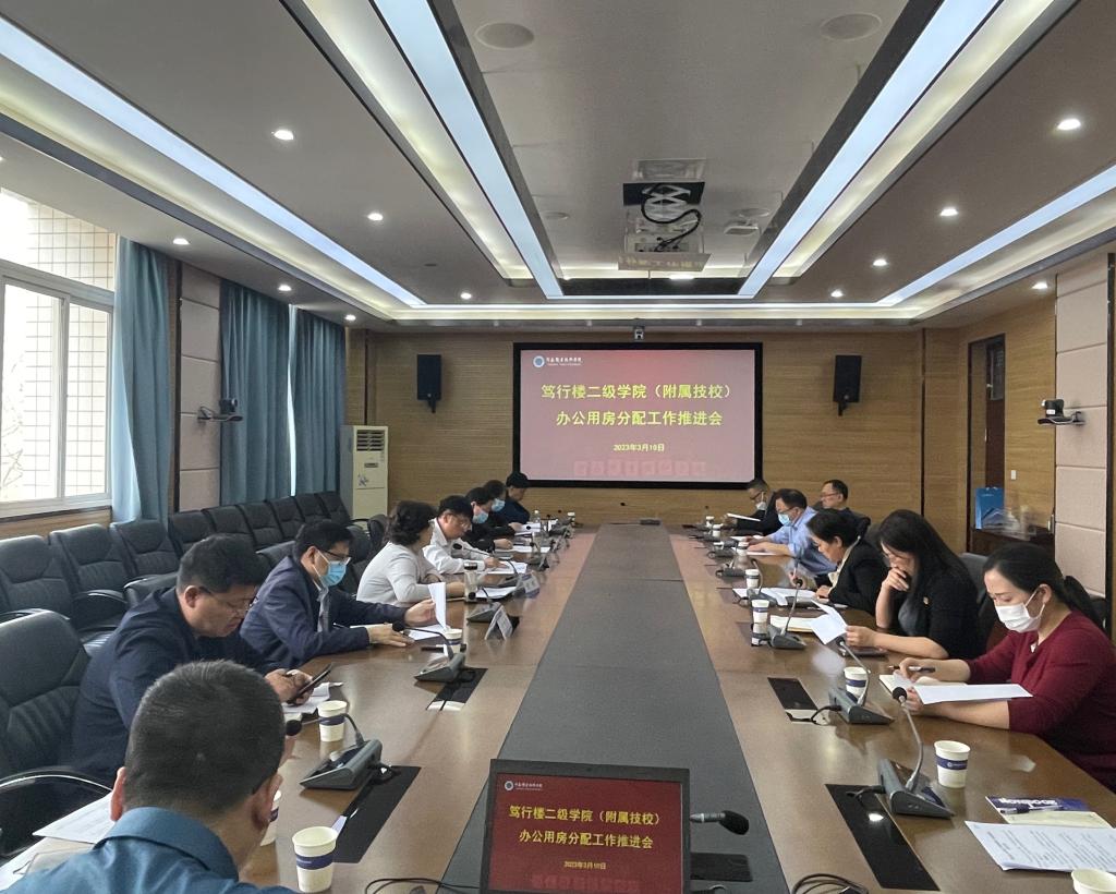 3月10日下午,我校在行政楼317会议室召开笃行楼二级学院办公用房分配推进会。校长梅乐堂,党委副书记、纪委书记田华,副校长肖珑、邵芙蓉、任枫轩出席会议,党政办公室、发展规划处、后勤管理处、国有资产管理处、综合实训中心以及相关二级学院负责人参加会议。