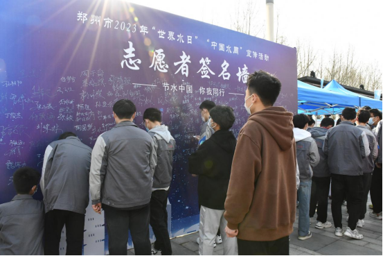 活动由郑州市水利局、河南省节约用水办公室主办,旨在进一步唤醒全社会珍惜水、节约水和保护水的意识,使每一个公民自觉参与水资源管理,关注水利建设,从而推进依法治水、依法管水进程。启动仪式后,学校50名志愿者参加了“节水中国 你我同行”签名和参观 “世界水日”展板等活动。