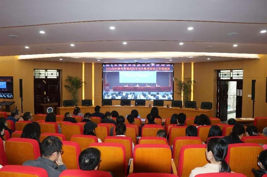 3月16日上午,2024届河南省普通高校毕业生就业创业工作视频会暨春季校园招聘系列专场活动启动仪式在郑州举行,全面贯彻全国两会精神,落实教育部2024届高校毕业生春季促就业攻坚行动决策,部署2024届高校毕业生就业创业工作。省教育厅党组书记、厅长毛杰,省人力资源和社会保障厅党组成员、副厅长杨昆锋,省工业和信息化厅二级巡视员王高潮出席会议并讲话。会议由省委教育工委专职委员吕冰主持。校党委书记厉励,招生就业处负责人在主会场参会,副校长肖珑、创新创业中心负责人及各二级学院书记、副书记、就业专干及全体毕业班辅导员等80余人线上收看会议。
