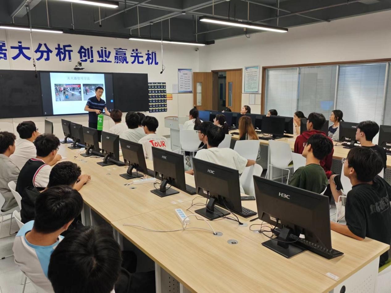 安全培训会上,实训中心负责人指出了实训室安全的重要性,并对实训室用电安全、防火、防盗等方面进行了详细讲解,同时还介绍了消防器材使用方法、火场逃生方法,并指导师生进行了实操练习。